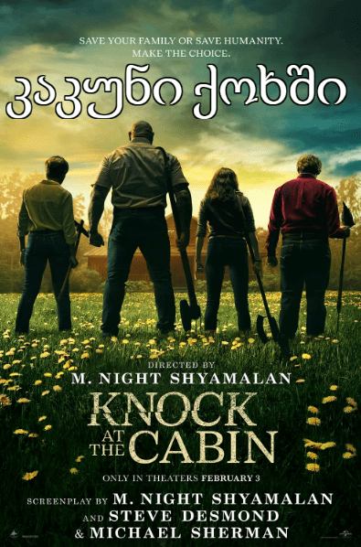 გამოშვების წელი: 2023 ქვეყანა: აშშ, ჩინეთი ჟანრი: თრილერი, საშინელება, მისტიკა ხანგრძლივობა: 1 საათი 40 წუთი რეჟისორი: მ. ნაით შიამალანი აღწერა რეჟისორის და სცენარისტის მ. ნაიტ შიამალანის ახალი საშინელებათა თრილერი, ახალგაზრდა დაქორწინებული წყვილის, ენდრიუს, ერიკის და მათი ნაშვილები ქალიშვილის ვენის შესახებ, რომლებიც ნიუ-ჰემფშირში მდებარე შორეულ ქოხში დასვენებას გადაწყვეტენ. მაგრამ გმირების დასვენება კოშმარად გადაიქცევა, როდესაც მოულოდნელად მათ სახლში უცნობები შეიჭრებიან,... Continue Reading →