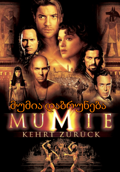 გამოშვების წელი: 2001ქვეყანა: აშშჟანრი: მძაფრ-სიუჟეტიანი, სათავგადასავლო, ფენტეზი (ზღაპრული), საშინელებახანგრძლივობა: 2 საათი 10 წუთირეჟისორი: Stephen Sommersბიუჯეტი: $98,000,000; შემოსავალი: $443,280,904; აღწერა: მრავალი წლის წინ, ძველ ეგვიპტეში, მეფე მორიელი საზარელ არმიას მეთაურობდა, მაგრამ როდესაც მან თავისი სული ანუბისს მიჰყიდა, ის ისტორიამ წაშალა. ამჟამად იგი მხოლოდ მითია.. თუ არც კი? rnრიკი და ეველინ ო'კონელები, თავიანთ 8 წლის ვაჟთან ალექსთან ერთად... Continue Reading →