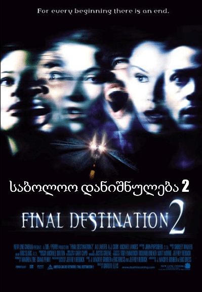 გამოშვების წელი: 2003ქვეყანა: აშშ, კანადაჟანრი: მძაფრ-სიუჟეტიანი, საშინელება, თრილერიხანგრძლივობა: 1 საათი 30 წუთირეჟისორი: David R. Ellisბიუჯეტი: $26,000,000; შემოსავალი: $90,941,129; აღწერა: მეგობრებთან ერთად გასართობად წასული კიმბერლი კორმანი უნებურად სასტიკი ავტოკატასტროფის მოწმე ხდება. ავტომაგისტრალზე სატვირთო მანქანა წონასწორობას კარგავს და მასთან ერთად ტვირთსაც, რასაც მთელი რიგი მანქანების შეჯახებები მოსდევს და უამრავი მსხვერპლი, მათ შორისაა კიმბერლიც. თუმცა, წამებში მას საკუთარი გულისცემა... Continue Reading →
