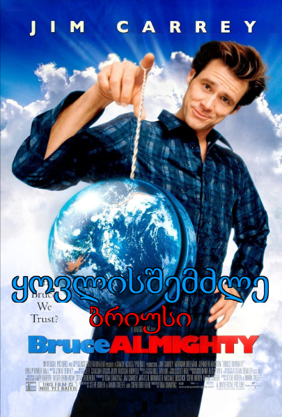 გამოშვების წელი: 2003ქვეყანა: აშშჟანრი: კომედია, ზღაპრული (ფენტეზი)ხანგრძლივობა: 1 საათი 41 წუთირეჟისორი: Tom Shadyacბიუჯეტი: $81,000,000; შემოსავალი: $484,592,874; აღწერა: ბრიუს ნოლანი ნიუ-იორკის შტატის, ბუფალოს ტელევიზიის ენერგიული ჟურნალისტია. მიუხედავად მაღალი პროფესიული რეიტინგისა და ულამაზესი მეგობარი გოგონა გრეისისა, ბრიუსი მაინც უკმაყოფილოა. მისი ცხოვრების ერთ საშინელ დღეს, ის ღმერთს დასცინებს, ხოლო პასუხად, ყოვლისშემძლე უფალი მას ღვთიურ ძალას მიანიჭებს....
